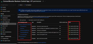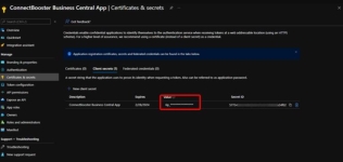 Once the values/credentials are generated in your Azure environment, they must be subsequently entered in both Business Central and your ConnectBooster portal (under Settings Integrations).