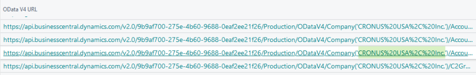 Within the ODataV4 URL, copy the Company ID (between the single quotes) to your clipboard separately.