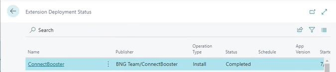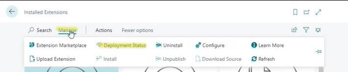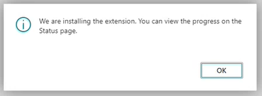 To check progress, or confirm installation has succeed, you may look in BC under the Installed Extensions screen, using Manage + Deployment Status.