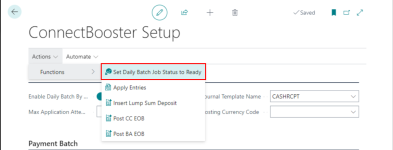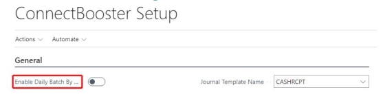 - Create and select a payment batch template which will be used for Credit Card based ConnectBooster payments
