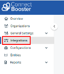 In the ConnectBooster portal, direct to Integrations in the left-hand menu.