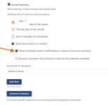 Send on new invoice creation - Choosing this option will send the Account Summary when new invoices are synced into ConnectBooster. This setting is independent of the other schedule options. Enabling this function reveals the "Send individual invoice notifications in place of Account Summary" option. Use this if you prefer ConnectBooster to send individual invoice notifications when new invoices are synced.