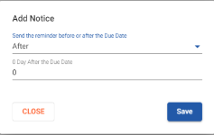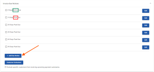 Check the notices you wish to be sent out (Example: 15, 30, 45, 60, 90 days defaults) or choose Add Due Notice to specify a custom number of days after an Invoice Due Date.
