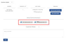 This contact will now be included in the Default Notification Emails section. You can easily determine where the default contact is being pulled based on the Integration listed by their name. In the photo below, the contact on the right shows that this contact was manually added as a default contact within the portal.![]()