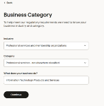 For the Business Category selection screen, select the business model that most closely matches your business type.