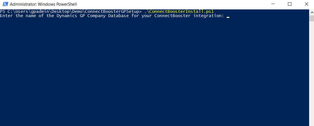 Navigate to the ConnectBoosterGPSetup extracted file in terminal and run the install script by using command .\ConnectBoosterInstall.ps1
