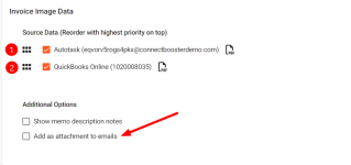 This setting includes the PDF (or HTML if QuickBooks Desktop) copy (based on the above preference) on certain client facing emails, if they are enabled.