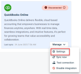 Click on the QuickBooks Online integration card + Settings.
