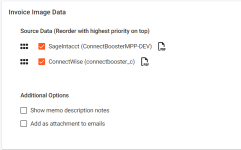 In the Invoice Image Data section, check the box for Sage Intacct integration and move it to the top of the list if you have multiple sources of invoices.