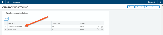 Click EDIT and Add/Enter the ConnectBooster SenderID in the web authorizations area: