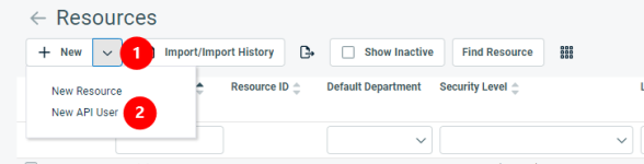 2. To generate a dedicated API User, navigate to Admin + Account Settings & Users + Resources/Users